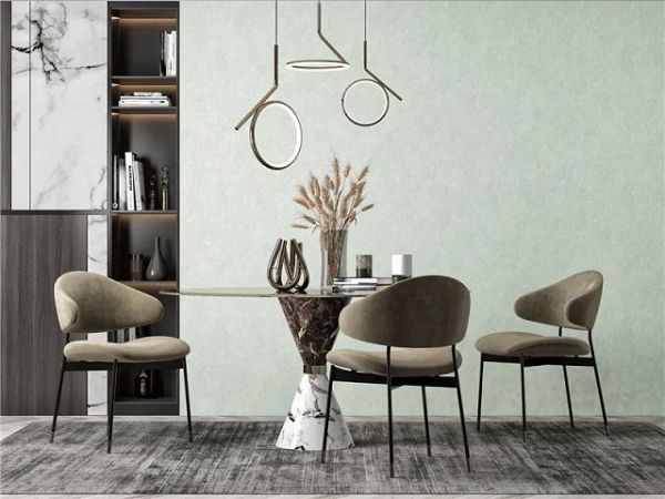 就大部分户型来说,一般都是坐北朝南的布局,也是说我们的餐厅在北面,也可以说在后面。而大部分的视角光线是在前面的客厅和南卧室的,这一面的墙布只要匹配了适合的颜色,几乎都是出彩的、也比较好挑选。