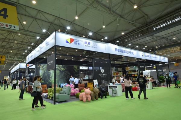由成都市新都区家具协会牵头组建新都家居产业联盟,组织联盟会员以公共品牌形象参加。组织新都区域规上制造业:办公、酒店、校用、民用家具、原辅材料及园区商贸性企业代表联盟形成四大主题模块集结3000平方米面积,产业链累计抱团品牌约 50 余家企业代参加,现场均以公共品牌形象展示“新都智能家居馆”形象,亮相本届展会。