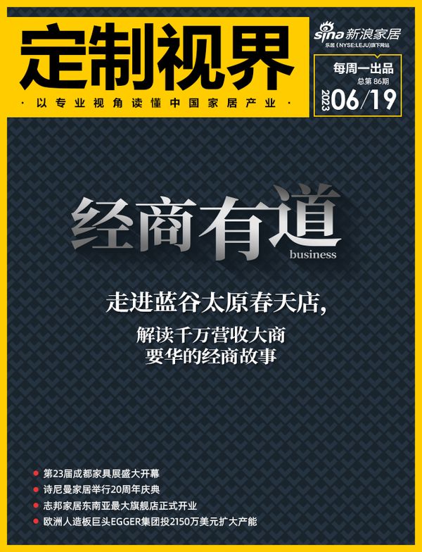 5月,单月、单店、单品牌,1260万业绩——蓝谷山西太原居然春天店——这家正式投入经营仅三个月的新店,在总经理要华的带领下,达成了令人惊艳的成绩。这一成功究竟是独到经营的特殊个例,还是可复制的商业模式?6月,新浪家居《经商有道》栏目走进蓝谷太原春天店,与蓝谷太原春天店总经理要华进行了一番深度交流,了解其成功背后的经营逻辑。<<点击查看文章详情>>