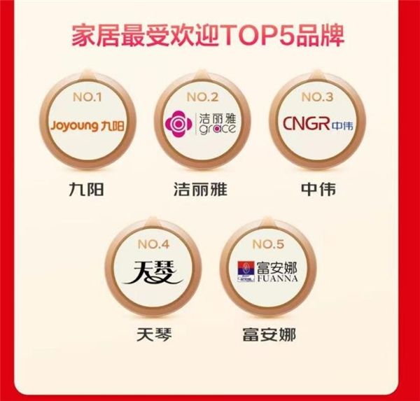 京东618不仅是企业采购用户的狂欢盛宴,对于品牌而言,也是开启高速成长的重要平台。在今年618期间,家居品类最1受欢迎的TOP5品牌为九阳、洁丽雅、中伟、天琴、富安娜。这些品牌均为国产品牌,由此也能够看到国产品牌竞争力与认可度的全面提升。小黄人、菲米生活和九阳成为家居榜单中增速最快的三个品牌。其中,小黄人成交额同比增长超7倍,菲米生活成交额同比增长超6倍,九阳成交额同比增长超3倍。除此之外,家居品牌法格和果兹成交额也分别实现了219%和136%的同比增长。