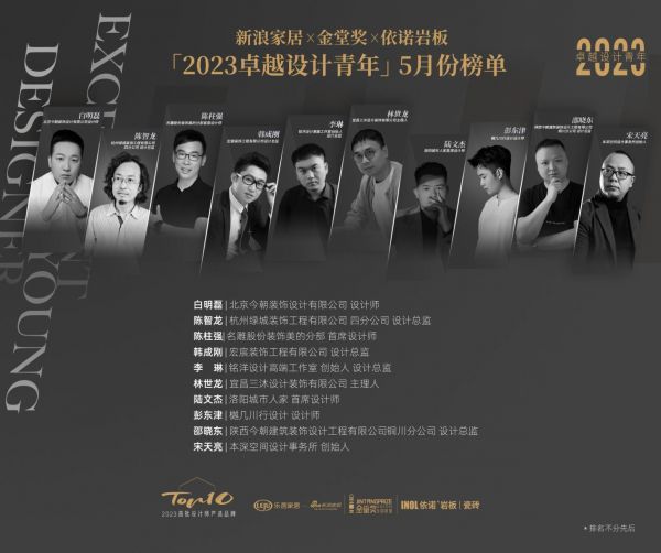晒榜单!新浪家居×金堂奖×依诺岩板「2023卓越设计青年」5月榜单发布