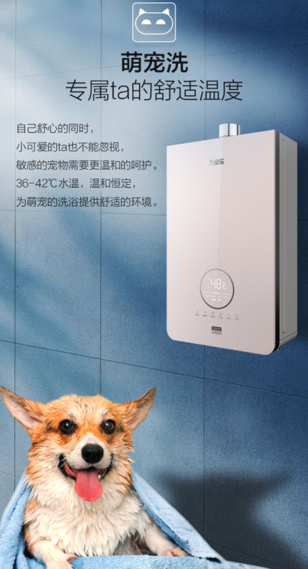 在万家乐发布的全新系列健康水燃气热水器中,针对不同人群可以匹配拨不同的模式:蓝湖热水器Q8有舒适浴、老人浴、儿童浴和浴缸浴;富氧热水器Q5L有适合药浴泡脚的高温浴;变频恒温热水器Q3实现丽人浴,甚至还有针对家庭宠物的萌宠洗。