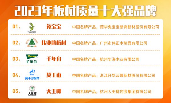 1、兔宝宝——中国板材质量十强品牌,中国名牌产品,德华兔宝宝装饰新材股份有限公司