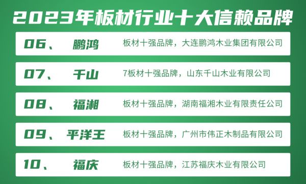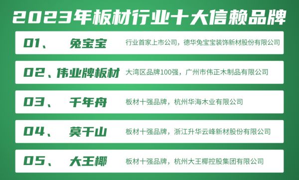 2023年2月19日,品牌之家举办了“2023年板材行业十大信赖品牌”网络评选活动。板材作为家装的重点材料,信赖度成为了广大消费者最为关注的问题.为了给消费者提供优质品牌的参考信息和表彰业内优秀企业,主办方采用线上百万消费者投票和线下专家团队测评产品质量的形式,从全国板材企业中挑选出真正信赖好的品牌。经过为期2个多月的质量和口碑比拼,以下十个品牌在众多企业中脱颖而出,以下是“2023年板材行业十大信赖品牌”的入选企业和品牌: