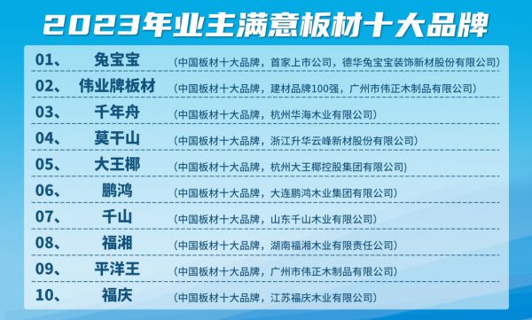 2023年业主满意板材十大品牌