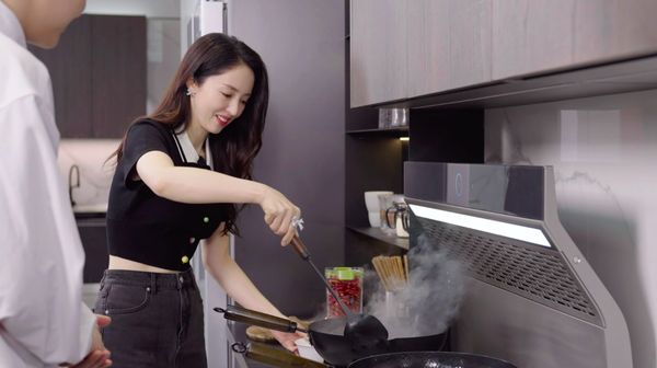 董璇化身“品质官”,来到火星人工厂的第一件事,就是测试一下火星人的产品是不是真如宣传所说“炒一百个辣椒都不怕”。来到X8集成灶面前,只见她娴熟地将辣椒倒入锅中翻炒,油烟瞬间被吸走,更夸张的是,两边的锅同时翻炒,油烟依然无影踪。这都归功于X8搭载了行业首创的单向直排风道,左右单向排烟,更安静;25㎡/min的大吸力,350W飓⻛Turbo变频增压引擎,风速提升20%,吸烟面积提升50%。