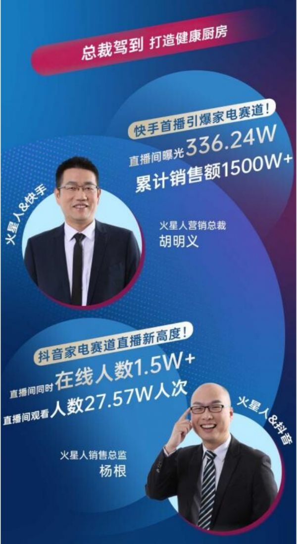 为呼应现今消费者互动方式的转变,火星人打造了品牌专属直播间,更有明星大咖加盟造势、火星人高管总裁亲临直播间,借助直播渠道与消费者对话。