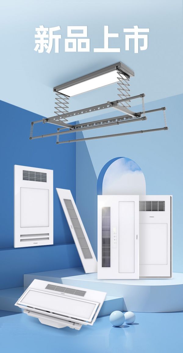 重磅推出浴霸、凉霸、晾衣机等顶部新品电器,