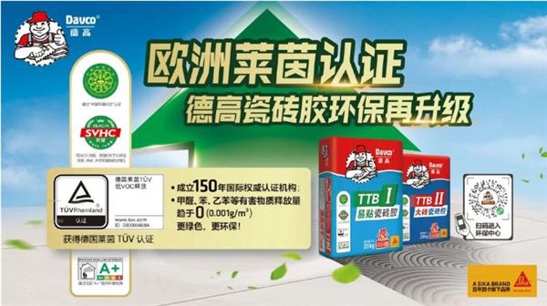 我们还要告诉所有的客户,西卡德高瓷砖胶的环保质量再次升级,从国内到国外,我们引入了更高标准,用更好的产品,来展现我们对师傅、业主、客户的承诺与负责。