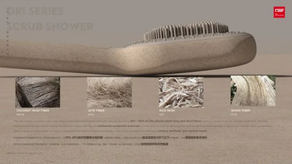 不仅如此,在2022CMF设计奖中,箭牌家居ORI系列搓淋按摩花洒荣获产品类金奖。在这件产品中,设计师创新运用植物纤维环保注塑材料,如椰子壳纤维、黄麻纤维、稻壳、活木等。全新的设计与环保的选材、不仅给用户独特的体验,更是产品绿色选材又一成功示范案例。