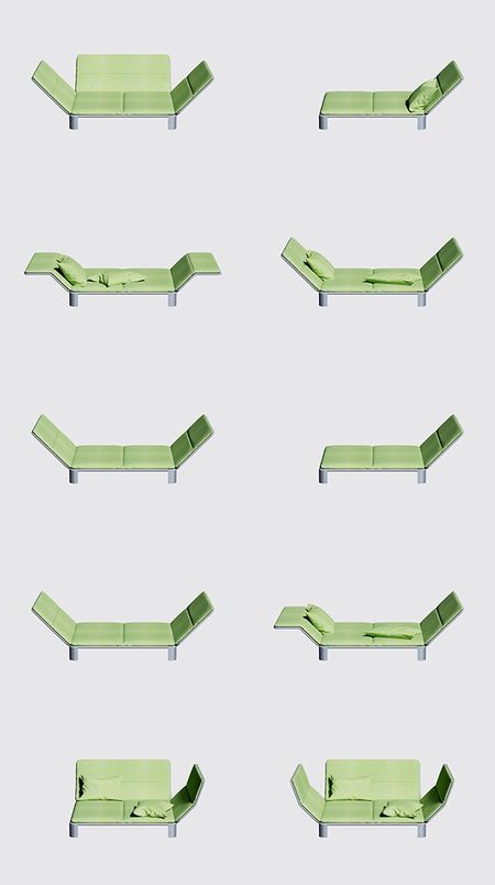 该家具采用模块化设计,通过不同的组合,能实现多种功能,比如沙发、躺椅、睡床等。
