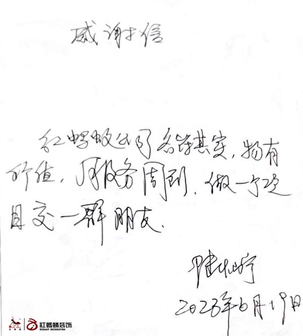 “受人所托,成人之美”,从消费者身边值得信赖的装企到美好生活的持续领跑者,红蚂蚁装饰集团一直在努力,未来,红蚂蚁装饰集团一定会为客户提供更多,更好的服务,成就“一次装修,居住无忧”的行业典范。