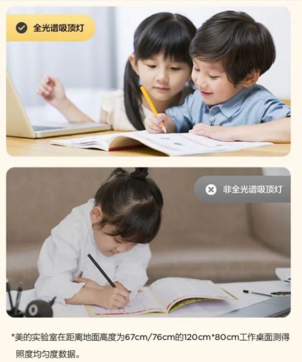 对于孩子们来说,家里是除学校以外所处时间最长的地方,因此室内的灯光质量如何也深深影响着孩子的视力水平。iCare自然光系列全光谱吸顶灯在设计之初,就参考了《中小学校及幼儿园教室照明技术规范》,并设置了远优于该标准的灯光质量标准,以营造更好的家居光环境,确保孩子们在家里玩耍、看书、写字,也能保持用眼健康。