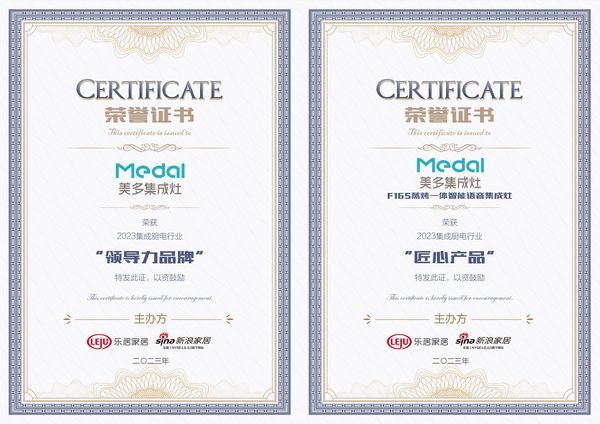 荣誉见证,实至名归! 美多荣膺新浪家居“2023集成厨电行业领导力品牌+年度匠心产品”