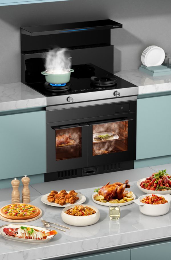 还附加智能控制,用“全新智能屏控制+云平台物联网技术应用”,搭载智能菜谱,提升智能厨房电器协同工作,让用户操作更便捷,为用户提供智能、科学的使用体验;