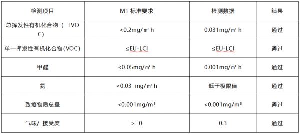 芬兰M1环保认证是目前全球范围对涂料VOC释放量管控极其严苛的权威环保认证之一,在涂料涂刷后28天之后,通过专用仪器检测墙体表面有机化合物、甲醛、氨、部分致癌物等有害物质的排放量。芬兰M1认证对涂料中TVOC限量要求为<0.2mg/(m²・h),嘉宝莉雅晶石最终检测结果是0.031mg/(m²・h),远低于限值标准。另外甲醛、氨和部分致癌物质的排放量,均能通过检测。