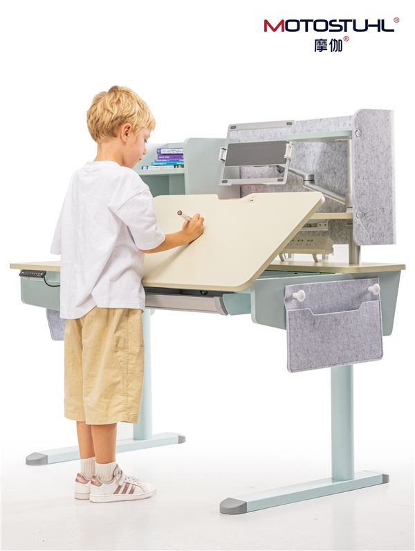MOTOSTUHL摩伽旗下儿童系列产品积极促进儿童青少年的健康成长,旨在有效预防坐姿不良、脊椎健康等相关问题的发生。区别于传统儿童家居,MOTOSTUHL摩伽走在人体工学科技家具创新前沿,从健康成长的角度出发,专注儿童人体生长曲线的研究。在国内外资深设计师和制造团队的引领下,MOTOSTUHL摩伽深耕人体工学智能家居产品领域,成功研发并推出了第一张无骨网框儿童人体工学座椅以及第一张专业电动儿童升降学习桌。摩伽电动儿童升降桌的推出,将行业内的儿童学习桌系列产品的功能和设计提升了一个新的高度,广距离调节范围使儿童和青少年实现坐站交替,改变久坐不良习惯,促进形成健康的学习方式。这种动态的坐立方式不仅可以激活孩子的思维创新能力,还能让整个学习过程变得更加有趣。
