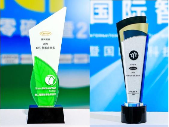 “2023 ESG典范企业和2023数字化转型典范企业这两个奖项,是对我们在绿色可持续发展和数字化解决方案领域的肯定。对地球、员工、社区的ESG承诺是刻在每个开利人基因里的,而开利数字化解决方案将优化系统运营从而更好帮助客户减少碳足迹。开利中国始终致力于智能、可持续化的气候及能源解决方案,为了实现绿色低碳发展,为了推动行业能源转型,开利中国将持之以恒的为我们的客户和合作伙伴提供引领行业杰出的硬实力。“。