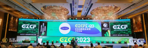 2023国际绿色零碳节有300家头部品牌共赴这场碳中和之约,围绕“迈向零碳未来”、“以科技创新实现绿色低碳发展”、“践行ESG”、“打造可持续发展的绿色企业”、“绿色金融助力碳中和”等议题展开深度交流和探讨,共绘“蓝”图。会议期间,特别举办了“零碳力量”2023致敬盛典活动中,作为ESG的践行者,开利中国因其在健康高效、节能减碳方面的卓越成就和榜样力量而获得表彰,连续2年被评为ESG典范企业。能获得此殊荣是对开利在可持续发展领域努力的认可。