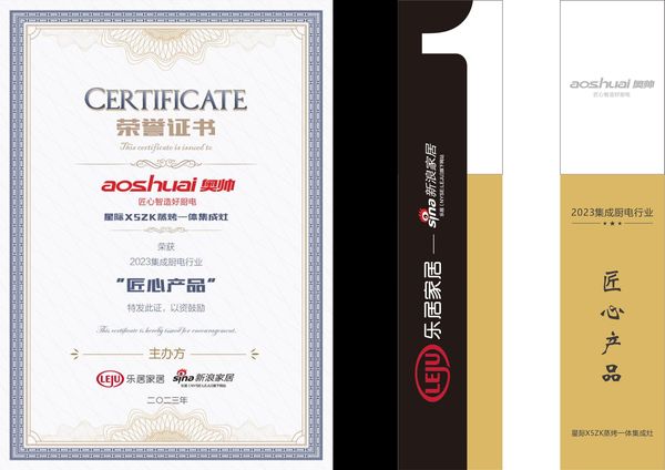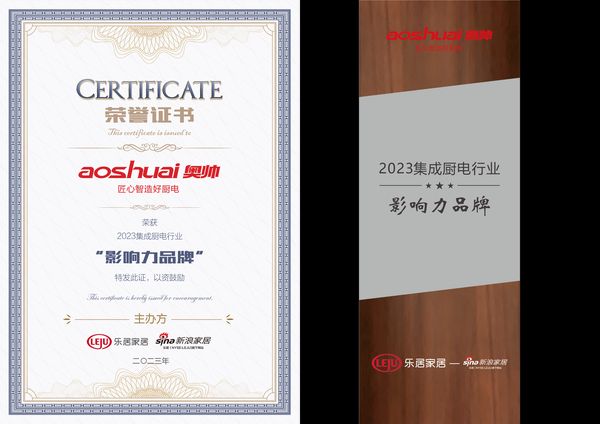 荣誉见证,蓄势待发!奥帅荣获新浪家居“2023集成厨电行业影响力品牌”、“年度匠心产品”!