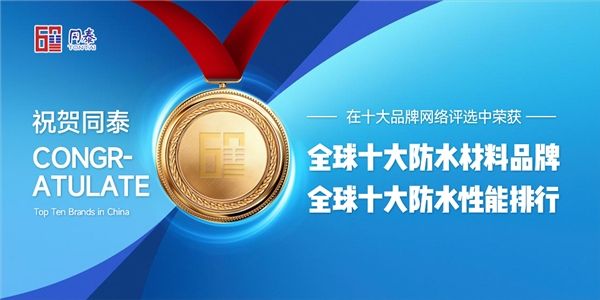 热烈祝贺同泰新材料上榜“十大品牌”,荣获“全球十大防水材料品牌”、“全球十大防水性能排行”等奖项!