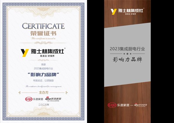 雅士林集成灶荣获“2023集成厨电行业影响力品牌”,无疑是企业实力和品牌价值的又一次彰显。同时,雅士利集成灶并率其S3蒸烤一体集成灶还一举摘得“2023集成厨电行业渠道明星产品”荣誉。
