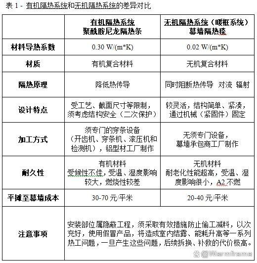 目前,有机隔热系统和无机隔热系统已经逐渐并行成为全球的两大类幕墙隔热系统。