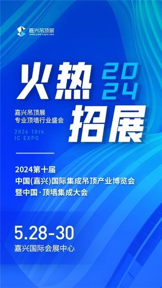 2024年老时间,老地点,依托嘉兴市集成装饰(顶墙)产业集散地的区位优势,第十届嘉兴吊顶展承载着所有顶墙人的希望与憧憬,将再度与大家见面!