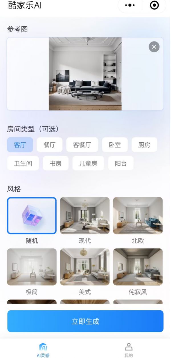 当业主想要快速寻找装修灵感时,“酷家乐AI”就像一个无限量灵感库。用户只需上传图片和选择设计风格,并给出简单指令,“酷家乐AI”将自动识别房间类型,快速生成多种不同风格的高清效果图,体验“所见即所得”效果。