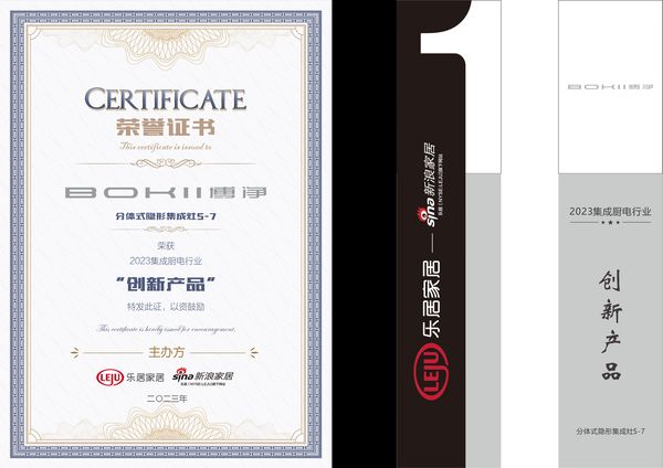 浙江博净电器有限公司(以下简称“博净”)以其产品分体式隐形集成灶S-7荣获新浪家居“2023集成厨电行业创新产品”。
