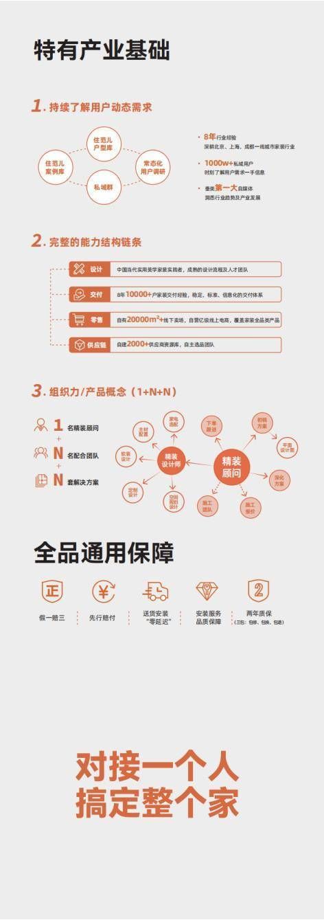 基于此,住范儿针对精装房整家定制领域,推出一种内涵更丰富、包容性更强的新概念,来诠释和承载新消费阶段的业务模式,涵盖了“精装房设计+定制+家具+软装+家电+微改”的住范儿·整家定制应运而生,很大程度上补充了市场供给空缺。