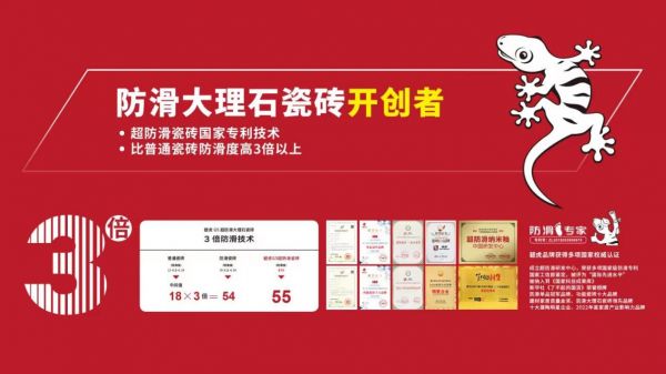 碧虎防滑大理石瓷砖拥有多项国家级防滑专利,荣获新华社《了不起的国货》荣誉授牌,防滑单品冠军品牌、瓷砖防滑王、防滑瓷砖销售冠军、建材家居质量金奖、防滑技术领先奖、功能瓷砖十大品牌、十大建陶明星企业、年度家居产业影响力品牌。