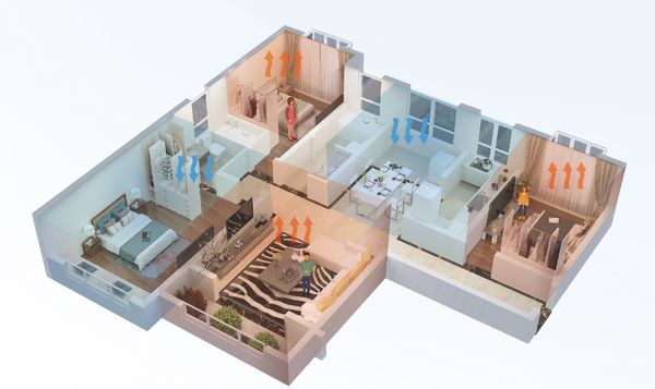 一台大功率“云境”(双风轮)机组,一机可顶两机,有效解决了暖通工程师、家装设计师选型时因机组功率不够采用多台主机组合搭配的困扰,让专业人士在结合用户习惯设计家居解决方案时能够更省心、省力。