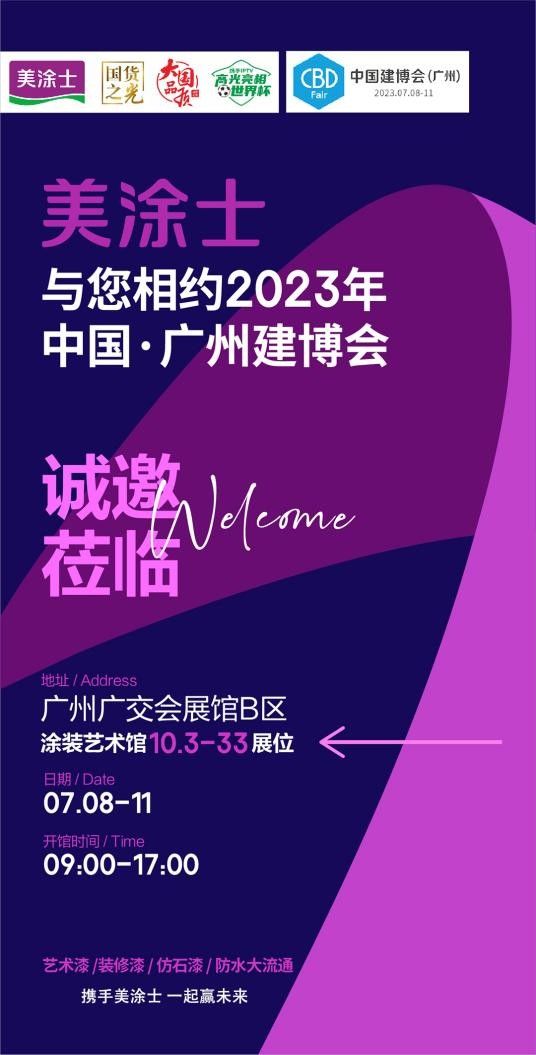 加入美涂士,共创成功,实现财富梦想!2023年7月8日至11日,广州琶洲会展中心B区艺术涂装馆10.3-33展位,美涂士真诚期待您的到来!让我们携手共创辉煌,走向成功的明天!