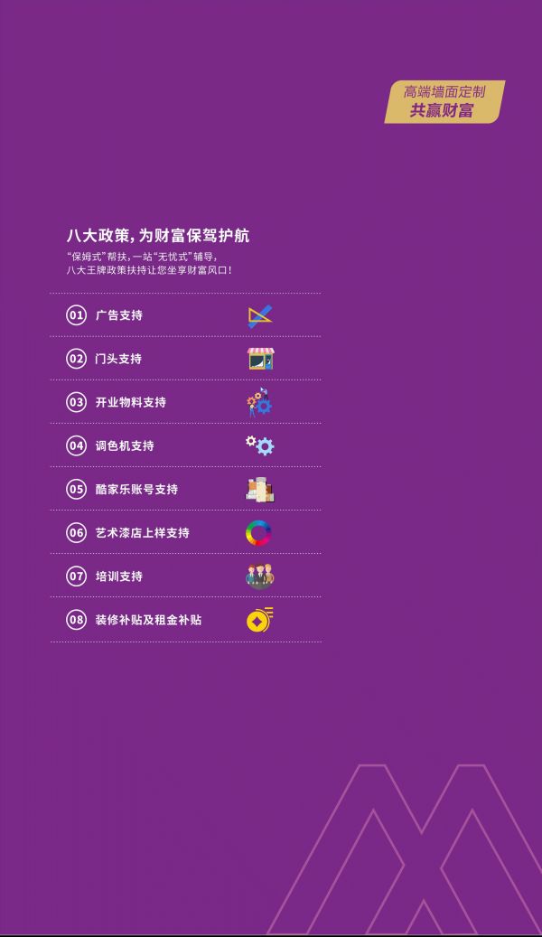 五、美涂士八大政策支持,为创业保驾护航