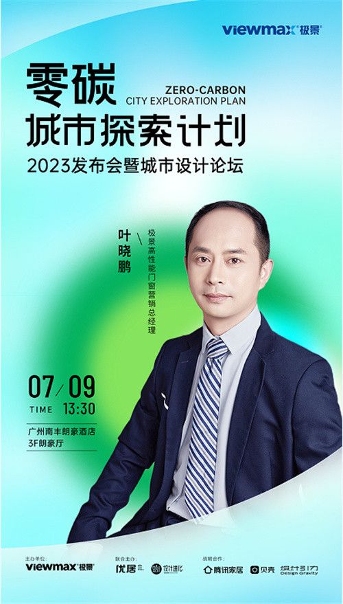 2023年7月9日,由极景门窗携⼿「设计进化」联合主办的「零碳城市探索计划——2023 发布会暨城市设计论坛」即将登陆广州建博会,以城市探索系列设计沙⻰的形式,与在地设计师共同探讨低碳环保、可持续设计的更多可能以及可能存在的机遇和挑战,表达极景对可持续未来⼈居的思考,承担起⻔窗企业的社会责任,为建设更加宜居、便捷、绿⾊、健康的城市发展出谋划策。