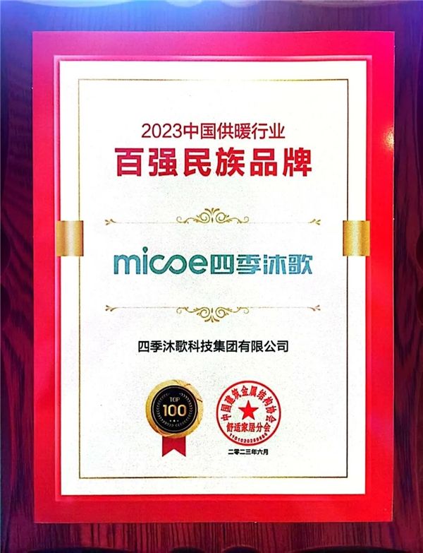 实至名归 | 四季沐歌荣膺“2023中国供暖行业百强民族品牌”殊荣