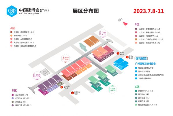 展区共分为定制、系统、智能、设计、材艺五大主题分布。其中,A区主要包含:“大定制·高定整装”“智能家居”“大定制·α智能整装”“大定制·整家定制”“大定制·装配式顶墙整装”;B区则主要涵盖:“大定制·智造装备”“大定制·潮家定制”“大定制·π定制美学”“大定制·门墙柜定制”“大定制·涂装艺术”;C区主要聚焦:“家居材料”“高定选材”“国际五金”“定制五金”“建筑装饰五金”;D区则主要以“设计主展馆”“户门定制”“系统五金”“系统门窗”展示为主。