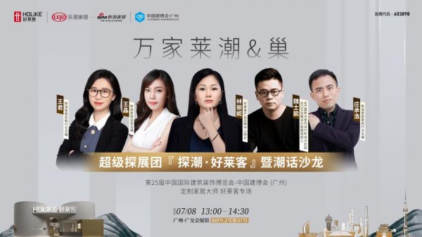 7月8日建博会开展当天,由WEI建筑与室内设计所设计总监/WCDA全案设计联盟发起人魏士能、新浪家居全国总编王晶、新浪家居定制行业主编王君、新浪家居家具行业主编庄承浩等各界大咖共同组建的超级探展团,将空降好莱客展馆,一同走进展馆深度探潮,沉浸式体验多元潮生活空间范本;此次潮咖聚首,更将展开一场精彩的潮居对话沙龙,共同揭秘新时代下中国城市潮生活的新趋势,探讨定制与潮生活方式关系,解锁设计造潮美好生活的更多可能。活动将通过视频直播的方式全程直播,敬请期待!