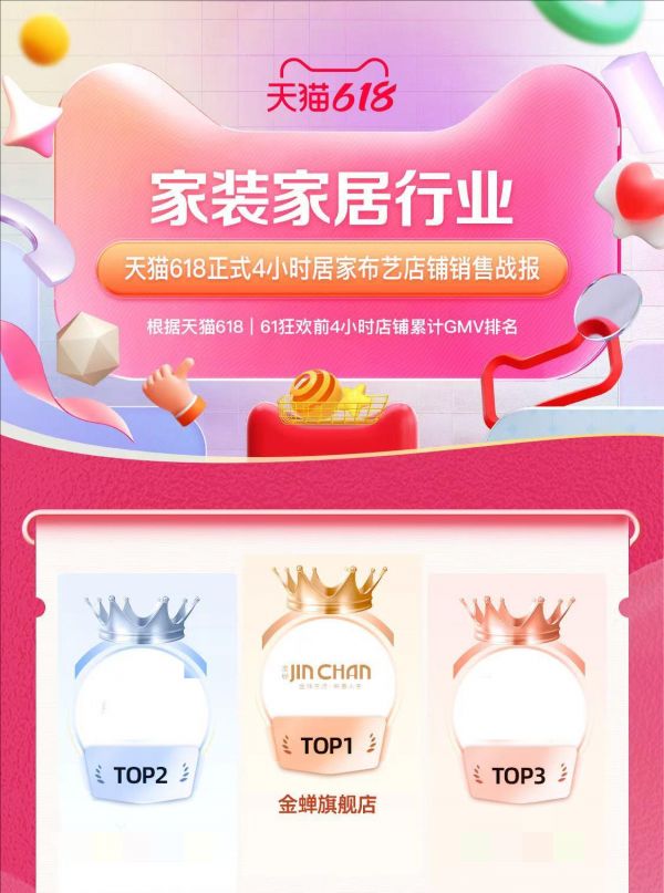 在天猫618 | 61狂欢前4小时金蝉窗帘就迅速脱颖而出,店铺累计GMV排名在家装家居行业GMV排名中位列第一。
