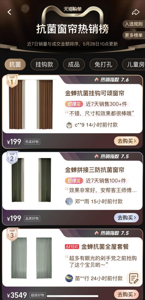 金蝉窗帘618活动引爆市场,窗帘类目销售额再创新高