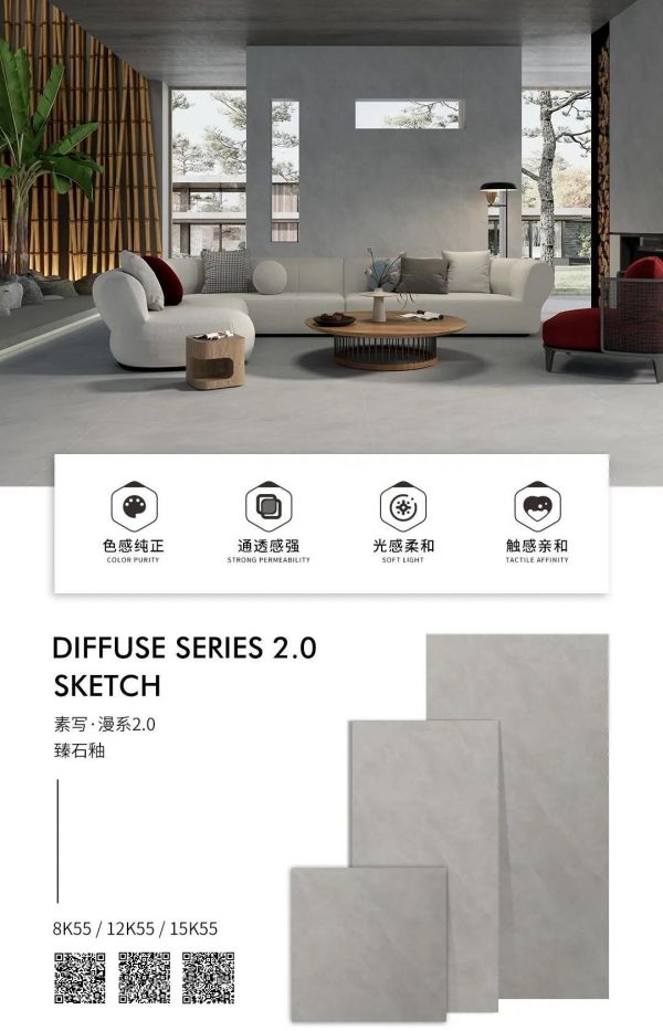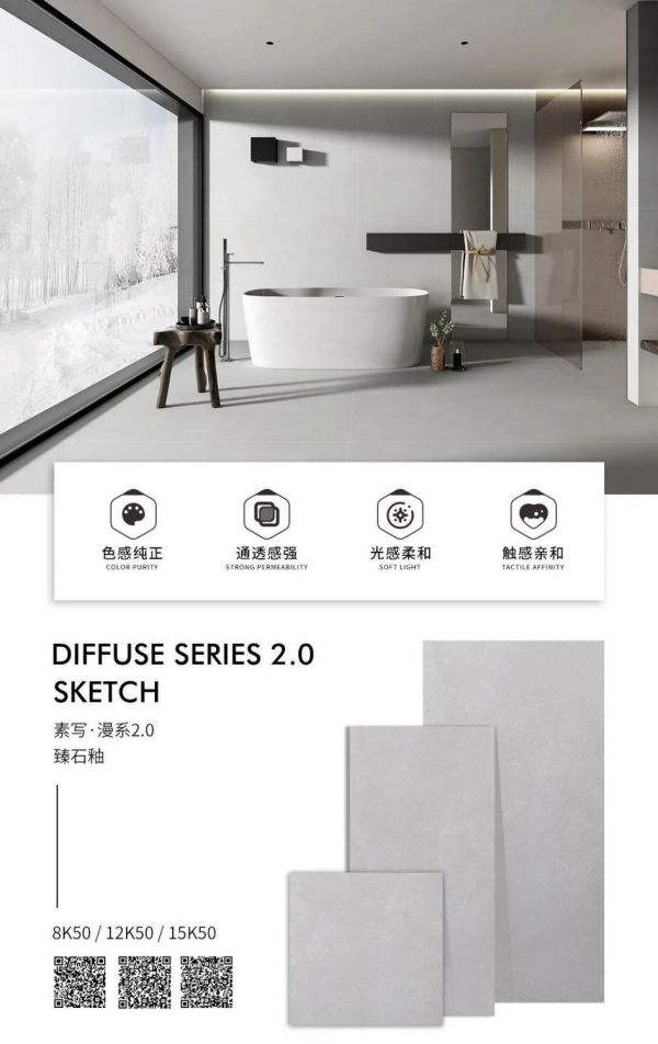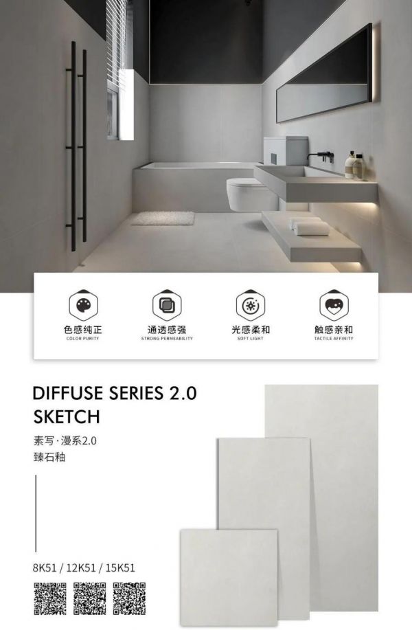 素写·漫系2.0臻石釉系列,遵循以素为美的原则,强调自然美感。用素雅的配色,自然的温和色彩,萃取大自然之美,弱化清冷的现代家装风格,使其清冷又不失温度,低调又不失精致,将自然温度融入居室,给人以舒适、温柔的感觉,为空间带来宁静温馨之感,是现代家居的必备元素。