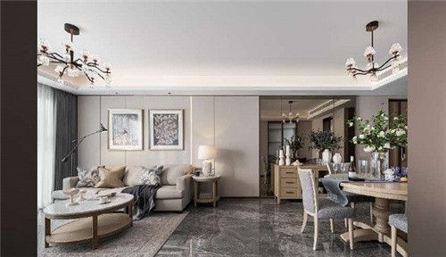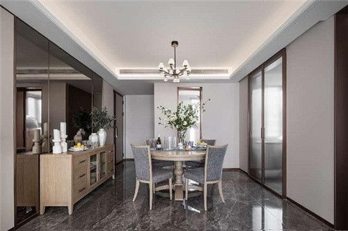 整个客餐空间采用了开放式的设计手法,延展了公共空间的范围,增强通透性,同时缩短家人们交往的距离,加深家的温馨。