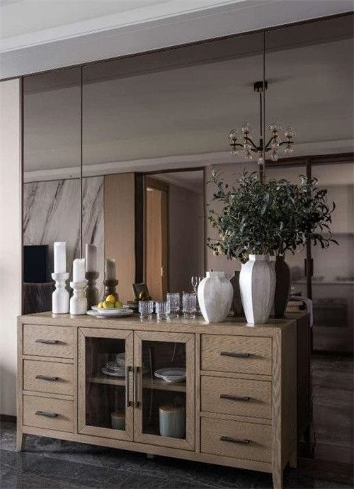 餐厅空间中拥有一面精致的装饰墙,Denver餐边柜融入其中,金属与光影交错,多重质感共融,虚与实相生,丰富质感慢慢打磨出生活乐趣。