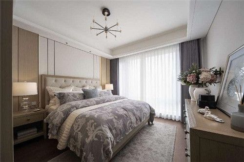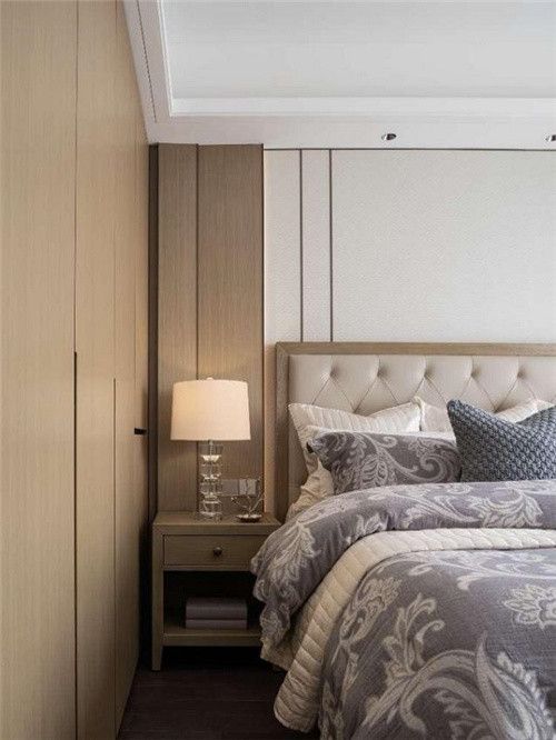 从客餐厅踱步到卧室,能发现光线正在由明转暗,私密感逐渐加深。主卧搭配的关键点在于引导情绪的内心阐释,加强生活感和温馨感,营造一种可以让人瞬间放松的氛围。