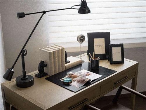 书房一定要透露着严谨的秩序吗? 书桌也可以随意地斜面向墙面,构造出书房独特的展开角度,打破常规思路,为房间增加新的空间维度。