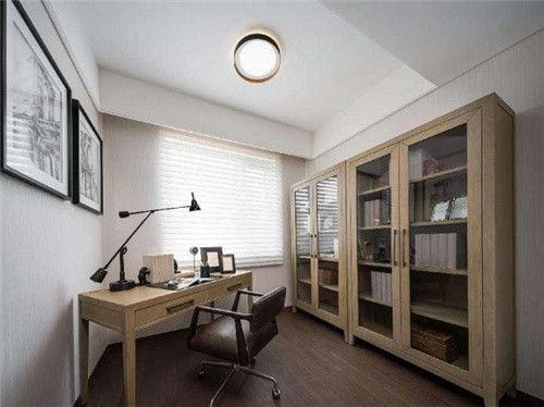 书房的配色与客厅相似,方正的空间格局提高了气质浓度。颜色的对比和光线的烘托最大化地发挥了空间本身的特点。