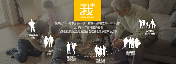 不同于以往的单个产品研发思路,尚品宅配在生活方式的研究上下足了功夫。2016年,尚品宅配携手暨南大学生活方式研究院成立“尚品宅配生活学院”,基于近千万中国家庭样本,2600万+方案库和中国家庭消费习惯大数据库,尚品宅配对不同生命周期的中国家庭进行全面的家居定制方案研究。系统分析总结出单身贵族、二人世界、伴你童行、学业有成、家成业就、儿孙满堂这六大中国家庭全生命周期定制模型。在此基础上,与时俱进加载潮流风格以及生活方式模型,推出“家+”生活方式系列产品,如萌宠家、美食家、梦想家、达人家、智能家、乐享家等细分的“空间+产品”生活方式解决方案。每个“家”背后是一个个真实可感的生活场景,唤起用户的代入感。