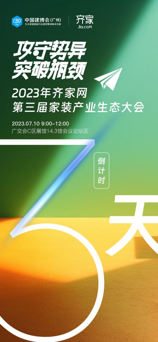 7月10日,齐家网将联合中国建博会(广州)共同举办“攻守势异,突破瓶颈——2023年齐家网第三届家装产业生态大会”,大会由新浪家居、优居视界、腾讯家居•贝壳等媒体战略支持。届时家装产业链内各方资深玩家,将围绕低增长背景下行业的发展路径进行深入探讨,同时希望以中国建博会(广州)为契机,与各方共同寻求有效的解决方案,找到突破瓶颈之策。距离大会举办还有3天,更多前瞻看点欢迎持续关注!