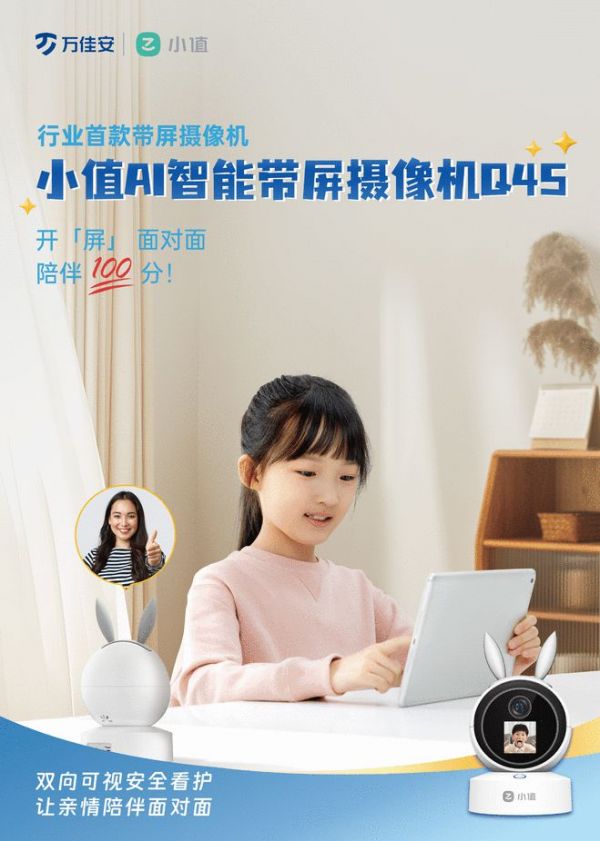 为了解决传统AI看护摄像机无法双向视频通话的难题,2023年5月20日万佳安小值品牌发布了“业内首创双向可视安全看护摄像机”。小值AI智能带屏摄像机Q45借鉴了智能手机的设计思路,为用户提供了实时视频通话功能。用户只需通过摄像机上的屏幕,即可与手机APP端进行实时视频通话,实现像微信一样的双向视频功能。“带屏双向可视安全看护”这一独创性设计,相信在不久的将来,将会被更多的智能家居产品所采用,引发一股行业内带屏智能摄像机的创新潮流。